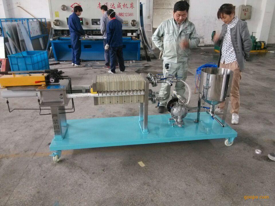 实验室技术员与工程部人员对接实验型板框机的使用方法